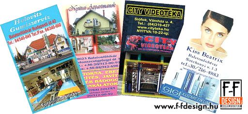 F-F Design Kft., Balatonföldvár, Plakát készítés, Névjegykártya készítés, Katalógus készítés, Dosszié/mappa készítés, Szórólap készítés, matrica készítés, Reklámtábla készítés, Prospektus készítés, egyedi megjelenések termékek